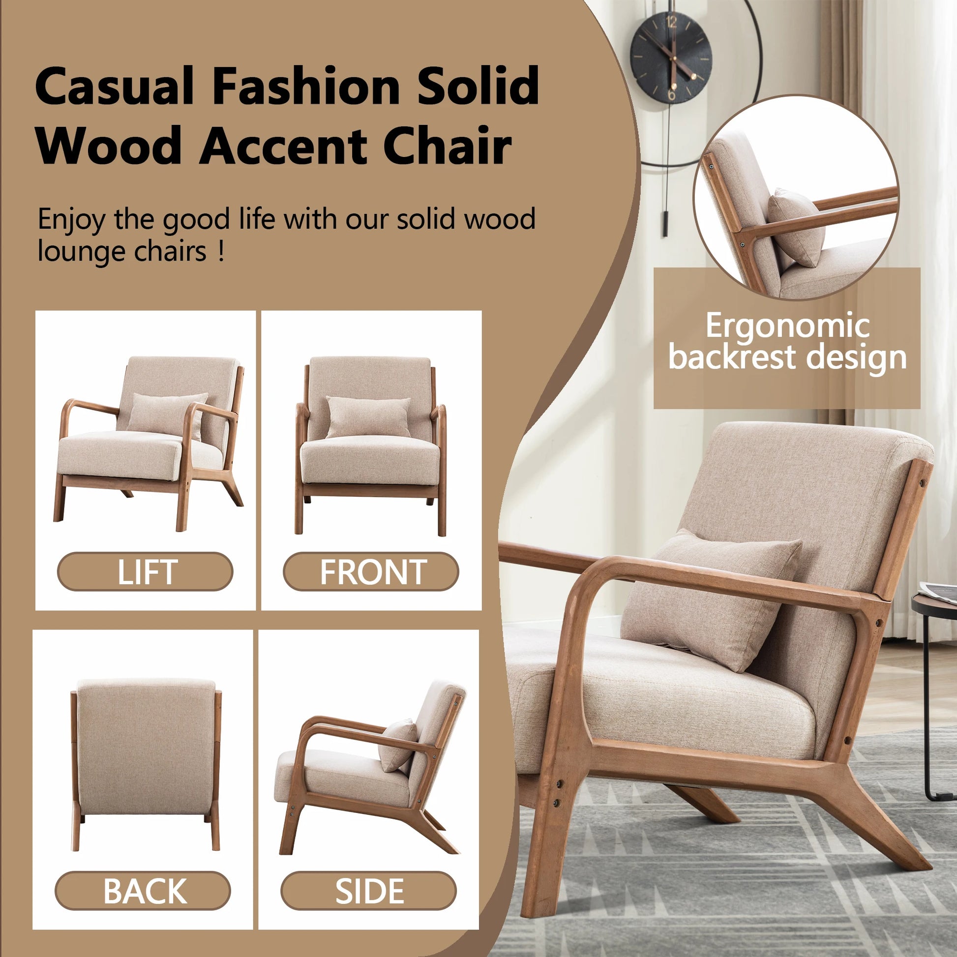 29 × 33 × 26 Inch Solid Wood Living Room Chair – 105° Backrest Casual Accent Chair with Pillow