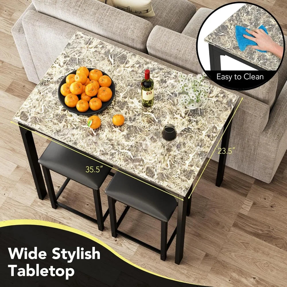 Compact Dining Set for Two with Counter Height Table and Upholstered Stools, Ideal for Breakfast Nook