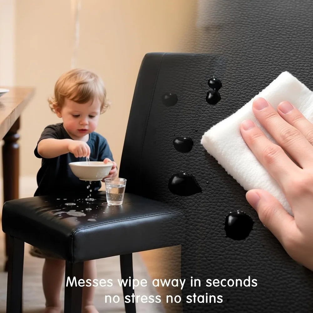 Covered in smooth, easy-to-clean faux leather, each chair offers a refined look while standing up to everyday use. The padded seat and supportive backrest provide comfortable seating for meals, gatherings, or extended conversations. Built with a sturdy frame and stable legs, these chairs ensure reliable support and long-lasting durability.