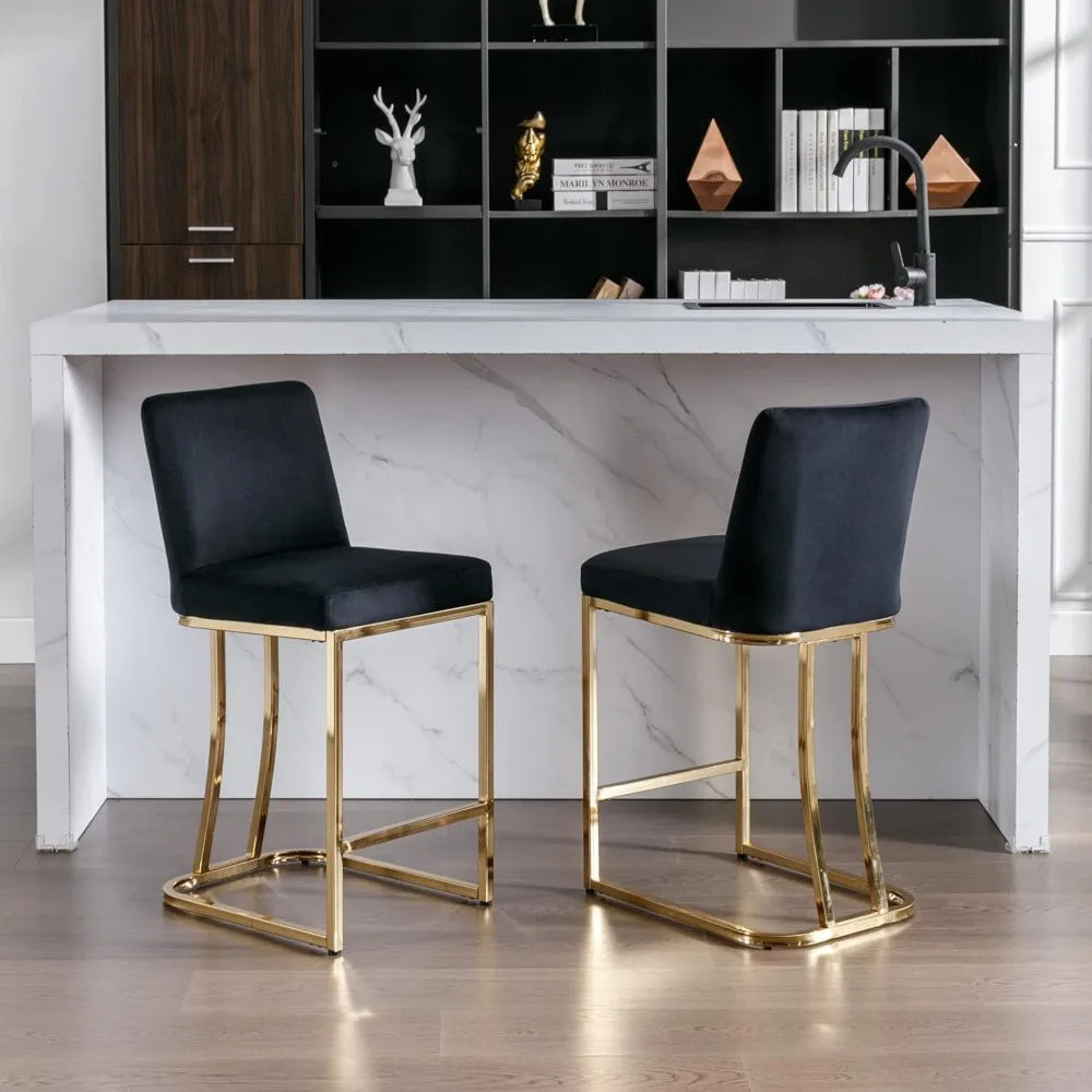 Upgrade your kitchen or dining space with this stylish set of 2 modern counter height bar stools. Designed to blend contemporary elegance with everyday comfort, these 24-inch counter stools feature plush velvet upholstery paired with sleek gold-finished metal legs for a refined, upscale look.