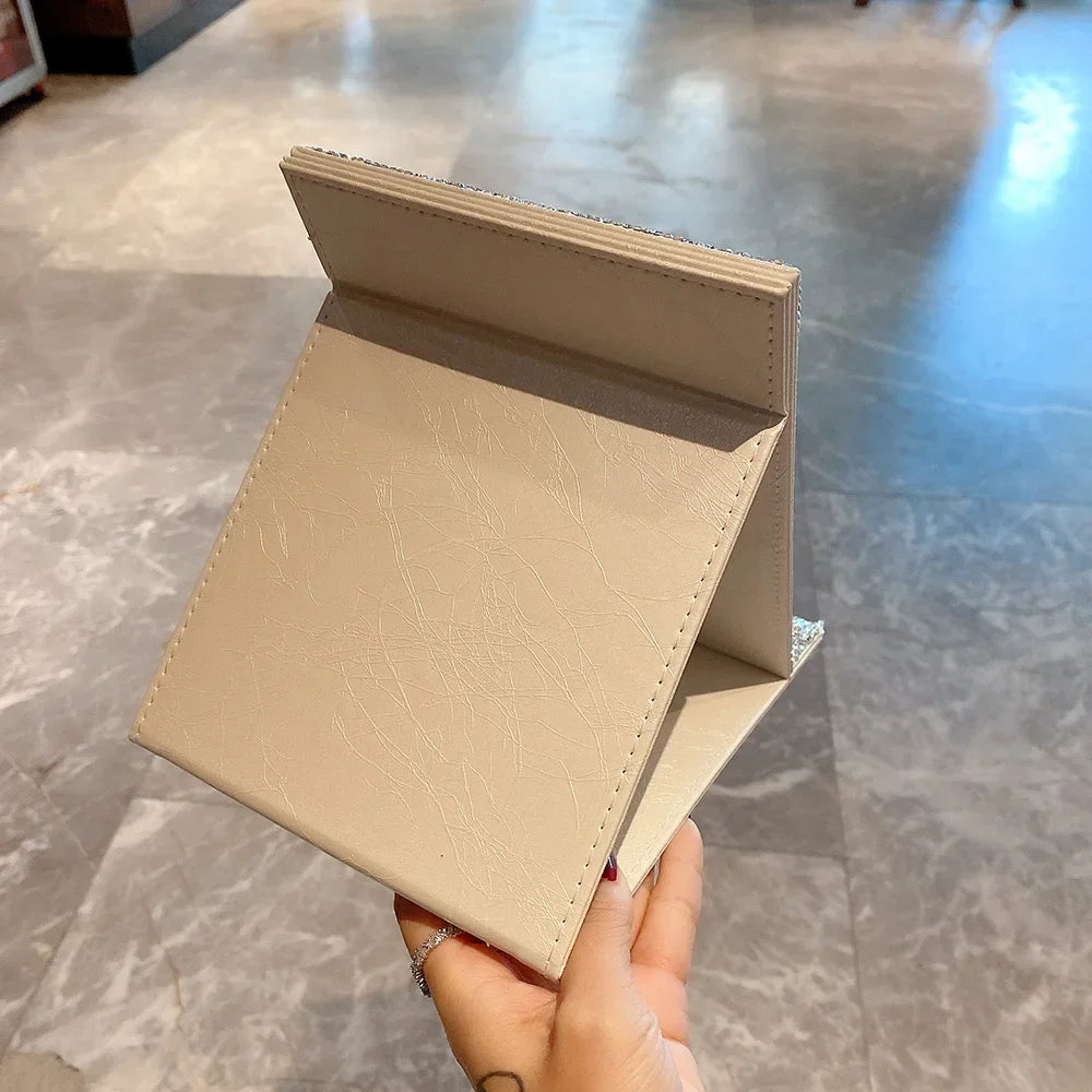 Sparkling Rhinestone Foldable Mirror Rectangle Makeup Mirror Portable Dormitory Desktop Dressing Mirror Bedroom Crystal Mirrors